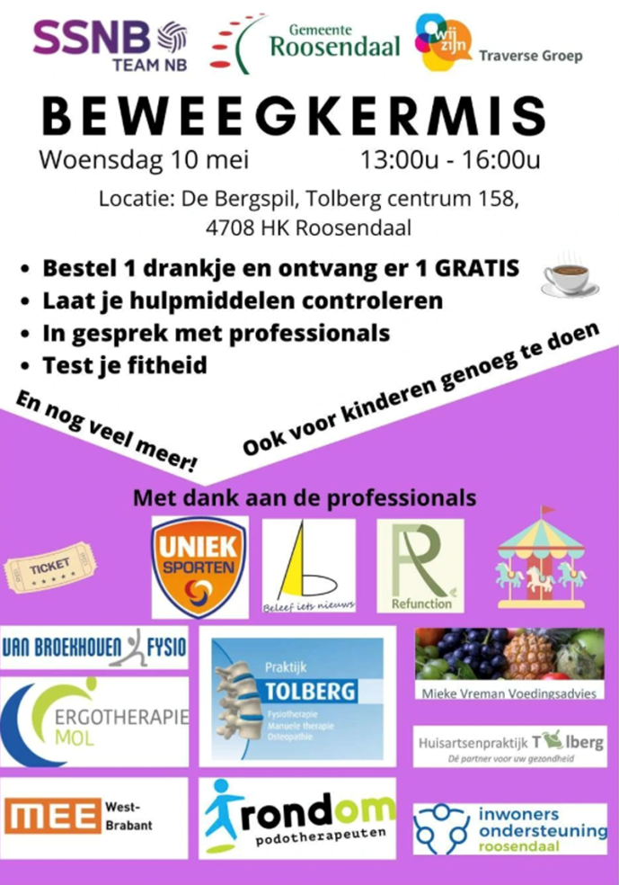 Na de eerste ontmoetingen volgde al snel de vraag: wat kunnen we samen betekenen voor de bewoners van Tolberg? Hoewel Tolberg een relatief jonge wijk is, hebben ook daar veel mensen te maken met eenzaamheid, ongezonde eetgewoontes en te weinig beweging. Zo ontstond het idee voor de Beweegkermis.